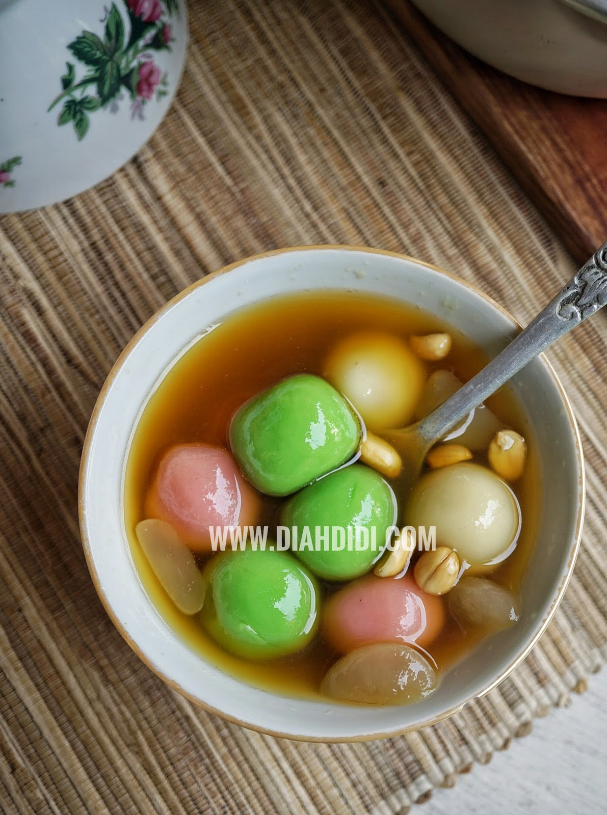 Sajikan hangat ronde bersama kuah dan bahan pelengkapnya.